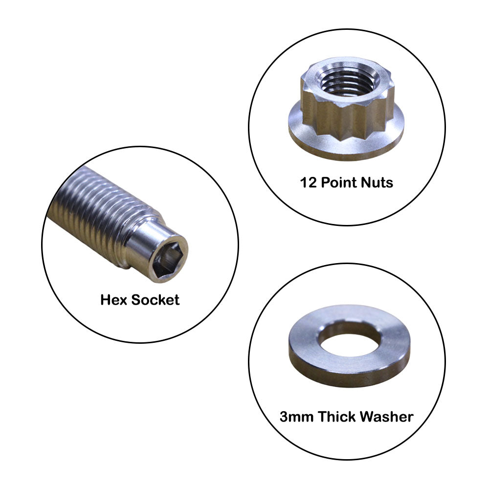 12 pcs x M10 Titanium Studs, 12-Point Nuts & Washers (Exhaust Manifold to Engine)